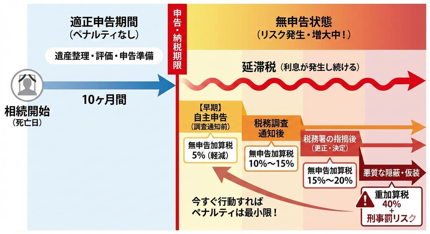相続税の申告を放置してしまうと、追加の負担やリスクが高まります。